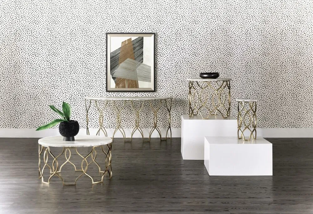 أضف بريقًا إلى أي مساحة معيشة مع طاولة أريكة ميلانج كورينا، التي تمزج بين قاعدة شبكية معدنية ذهبية مع سطح باركيه من العقيق الأبيض للحصول على مظهر متجدد وراقٍ. الأبعاد: العرض: 60 بوصة (152.4 سم) العمق: 20 بوصة (50.8 سم) الارتفاع: 29 بوصة (73.7 سم) الوزن: 78 رطلاً (35.1 كجم). المادة: معدن وعقيق. اللون: ذهبي وأبيض.